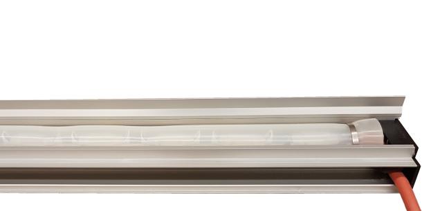 Linear luminaire with IP67 tube, slghtly opaline, resisting a high temperature 200°C .