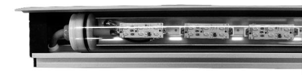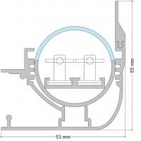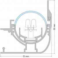 Natural anodised aluminuim profil with IP68 tube in polycarbonate lens with high mechanical and thermal resistance.
