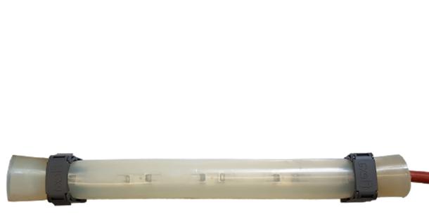 Linear luminaire with IP67 tube, slghtly opaline, resisting a high temperature 200°C .